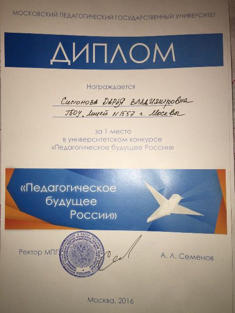 Зеленоград и наш лицей представляла ученица 11г класса Дарья Симонова, которая мечтает стать учителем русского языка и литературы. Дарья учится в классе педагогического профиля и уже имеет опыт проведения классных часов и уроков в начальной школе. Поэтому ей не составило труда обойти всех конкурентов и стать победительницей конкурса!