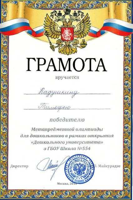 15 октября 2016 года в школе № 554 состоялась Первая метапредметная олимпиада для дошкольников 5-6 лет