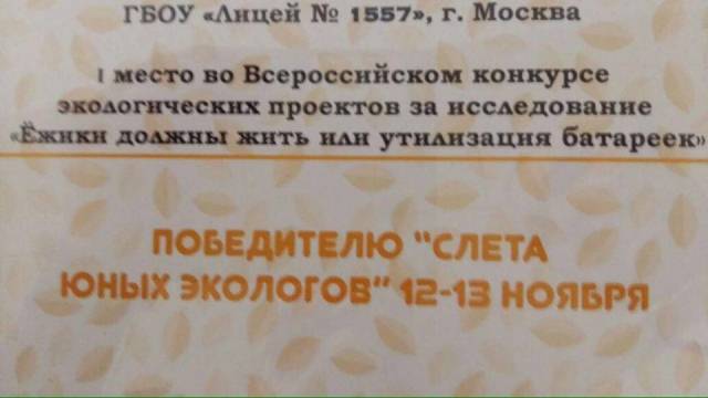 Команда 4в класса - А. Шевелева, О. Онипко, Е. Затона, А. Сидоров и А. Ситников (классный руководитель и руководитель проекта О.Буянова) - блестяще защитили проект экологической направленности "Ёжики должны жить, или утилизация батареек" и были признаны победителями!