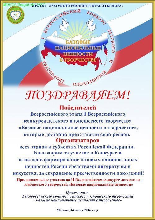 Наши лицеистки Полина Киямова (8 класс) и Арина Тамразян (3 класс) стали победителями всероссийского конкурса детского и юношеского творчества "Базовые национальные ценности".