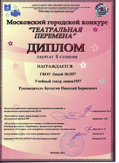 Учебный театр лицея стал лауреатом московского городского конкурса "Театральная перемена"!
