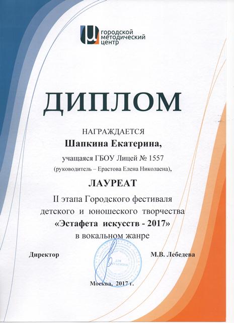 Екатерина Шапкина (корпус 509, педагог Ерастова Е.Н.) - лауреат "Эстафеты искусств" в вокальном жанре! Поздравляем!