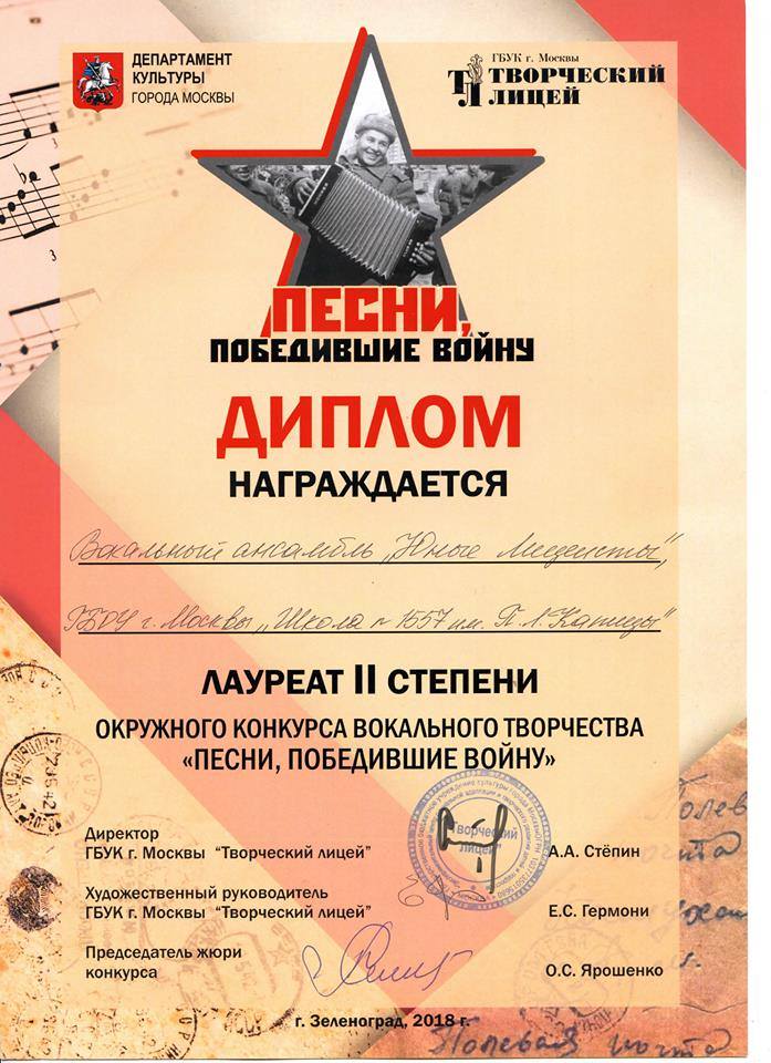 Вокальный коллектив нашей школы - лауреат окружного конкурса! 18.12.2018