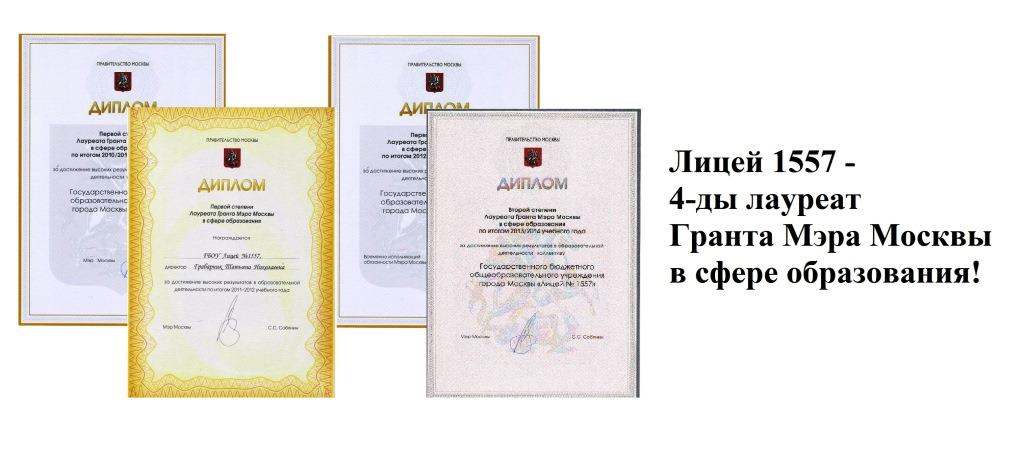 Дипломом лауреата Гранта Правительства Москвы в сфере образования