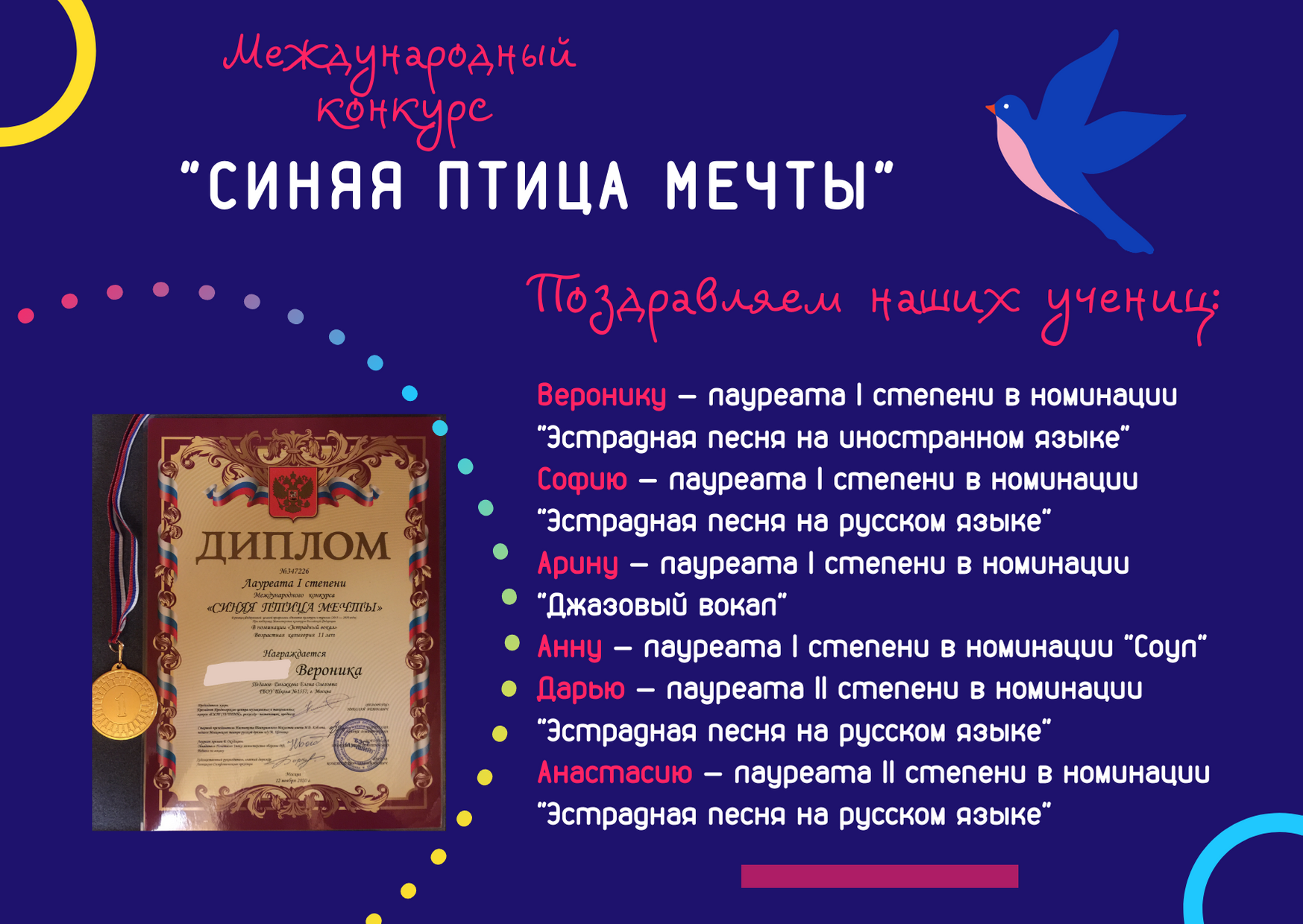 приняли участие в Международном конкурсе «Синяя птица мечты», который проходил в дистанционном формате,
