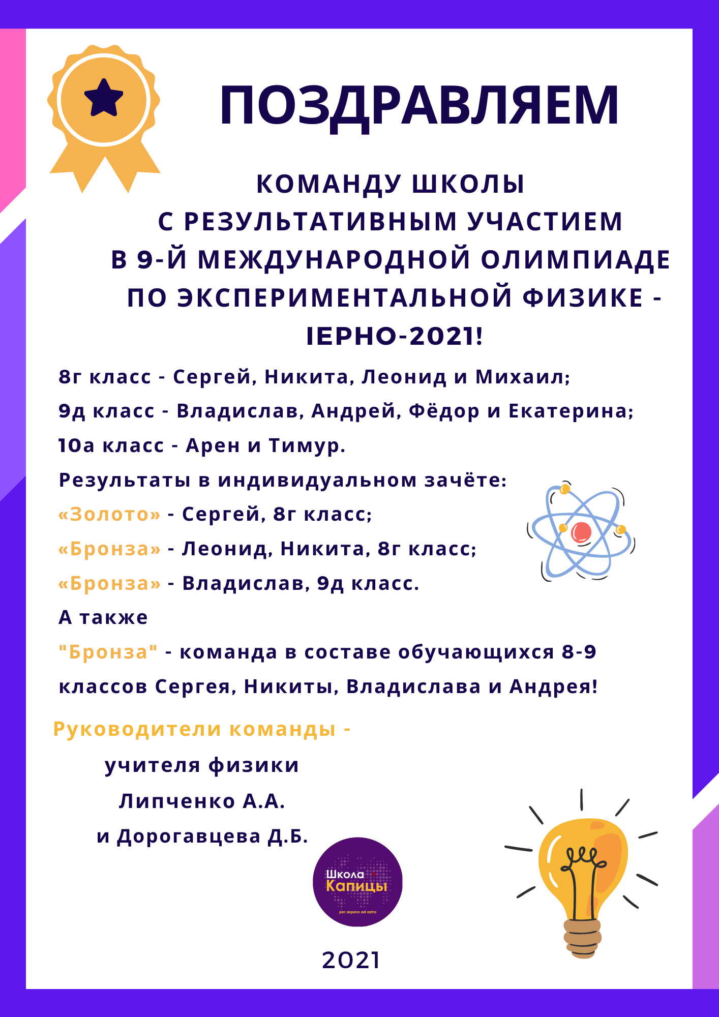 Поздравляем ребят и педагогов Нигматулина Руслана Равильевича,