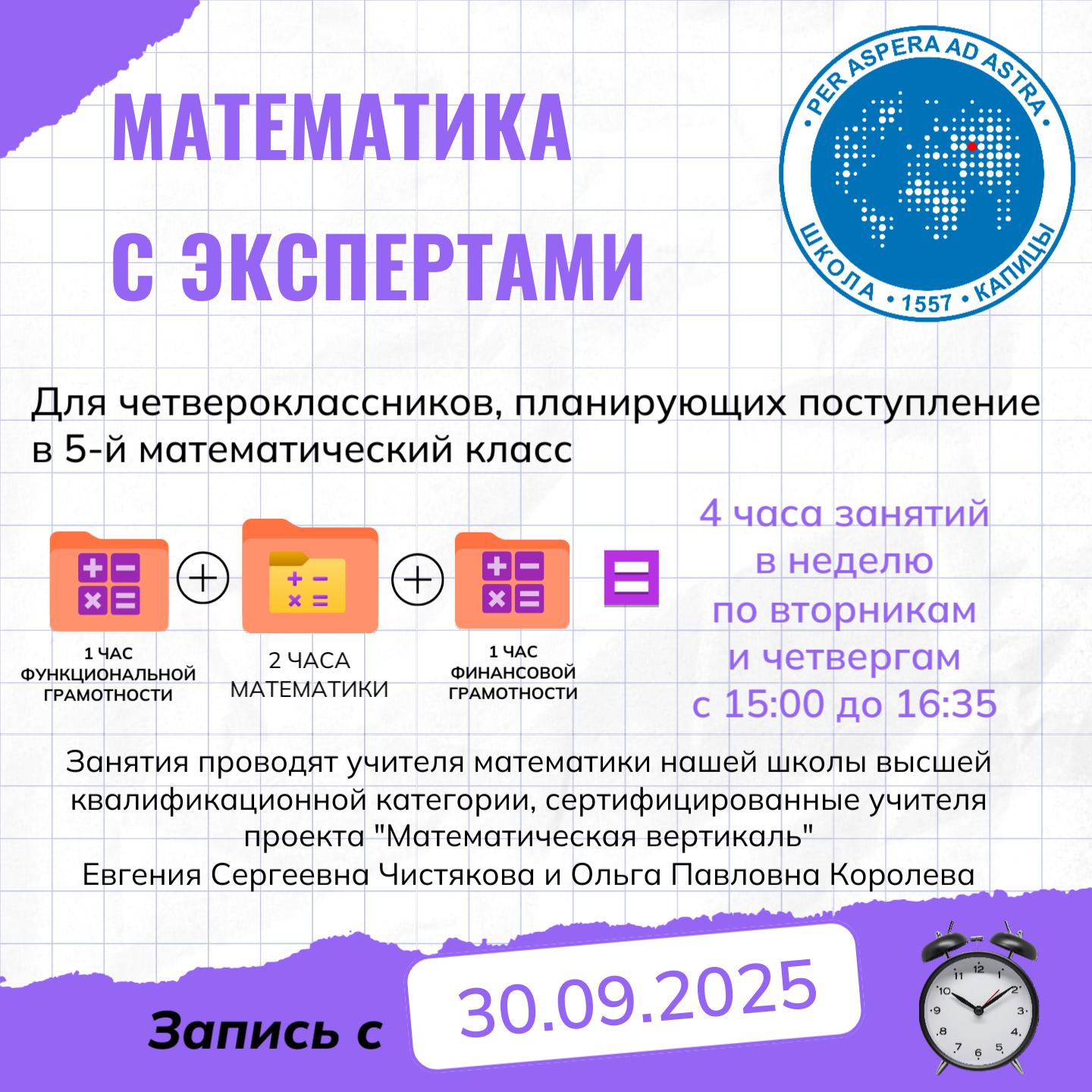 Вниманию родителей четвероклассников, планирующих поступление в 5-й математический класс нашей школы